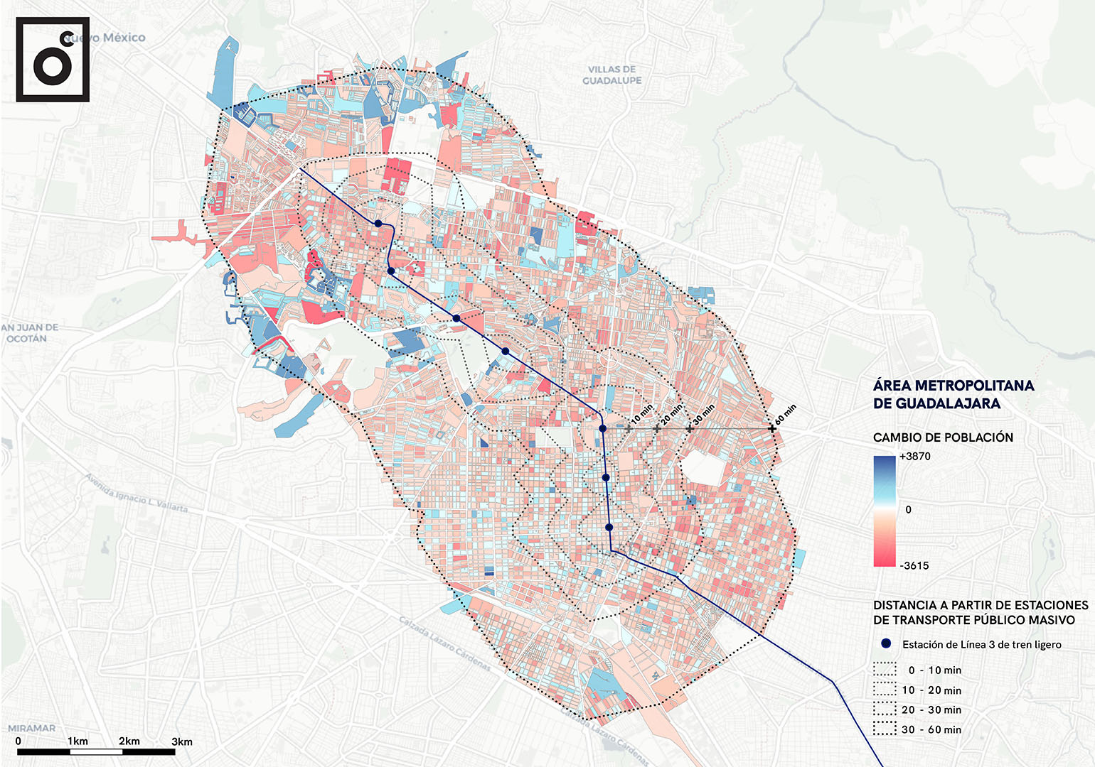 Aún así, los datos que conocemos nos llaman a cuestionar algunos de nuestros supuestos sobre la redensificación y consolidación urbanas en torno al transporte público masivo. Incluso bajo el supuesto de que esta infraestructura producirá un influjo demográfico a futuro, por lo menos vale la pena preguntar por qué se dio un despoblamiento en primer lugar, y si un futuro influjo supondría un proceso de sustitución de población o gentrificación.