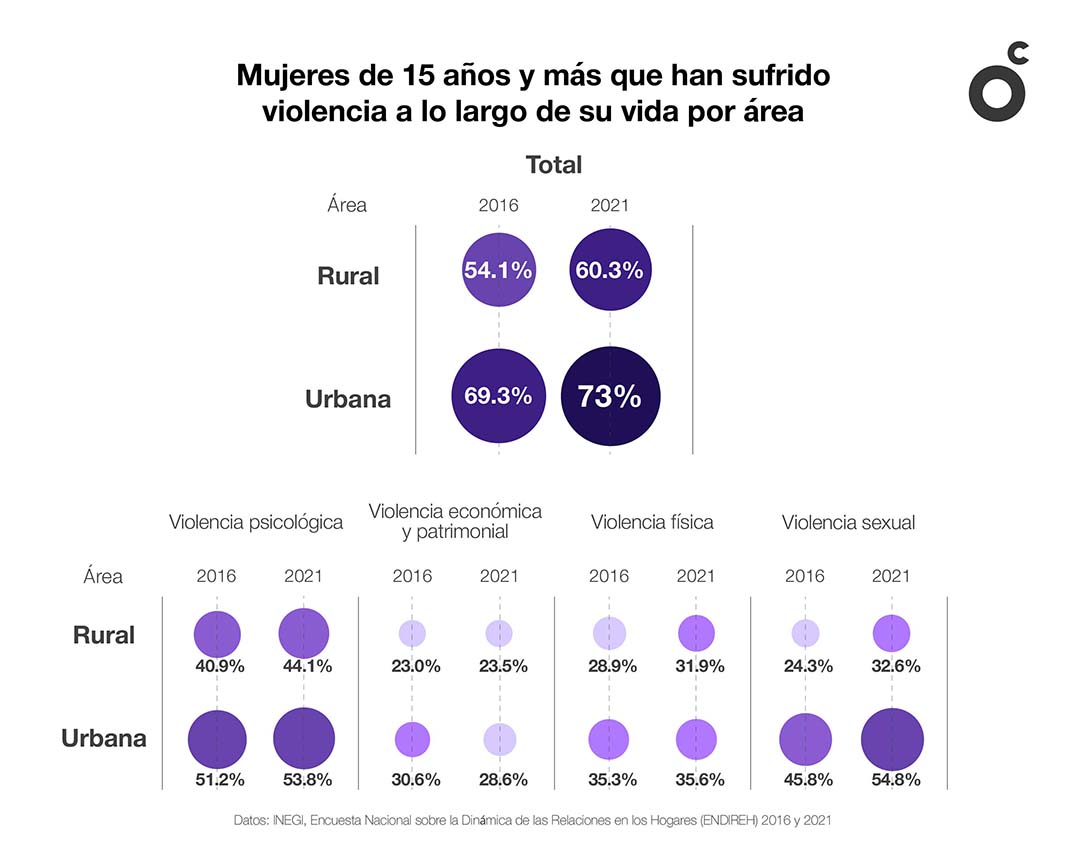 Las violencias sexual y psicológica son las que más han aumentado en la última década a nivel nacional. También existe una diferencia notable entre el porcentaje de mujeres que denuncian violencia basada en género en entornos urbanos y en entornos rurales.